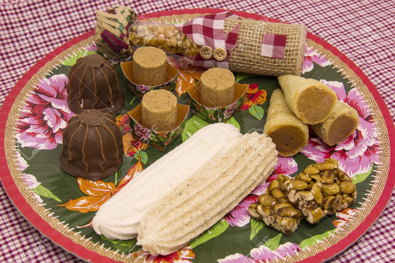 いくつかの典型的なブラジル菓子ジュニーナから ピーナッツ ココナッツのお菓子 マリアほくろ Pe デ Moleque 加糖練乳 チョコレート の写真素材 画像素材 Image 80866895