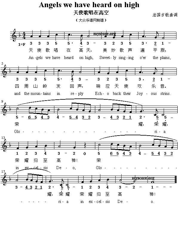 Angels We Have Heard On High 天使歌唱在高天圣歌中英天使歌歌谱简谱 五线谱